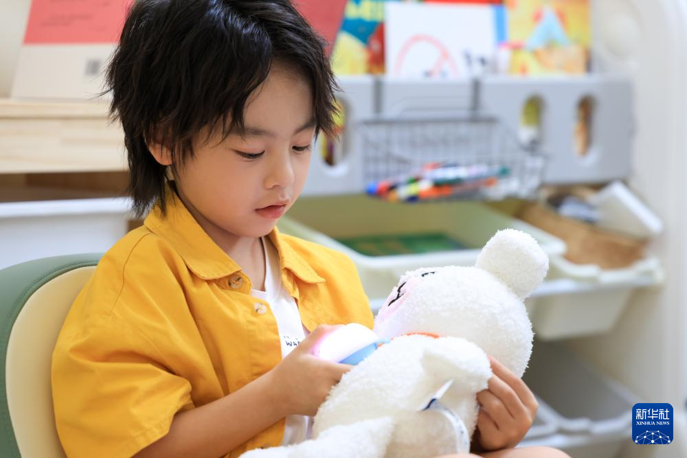 10月31日,在位于深圳的跃然创新科技有限公司Haivivi总部,一名儿童与该企业研发的AI玩具BubblePal互动。新华社记者 毛思倩 摄