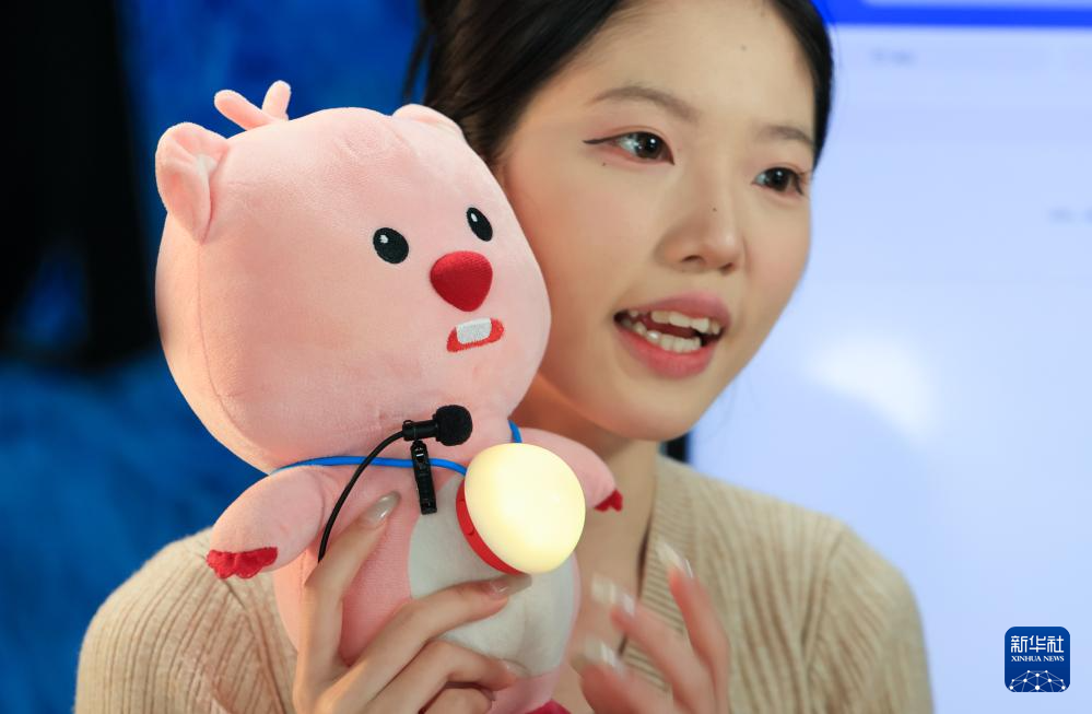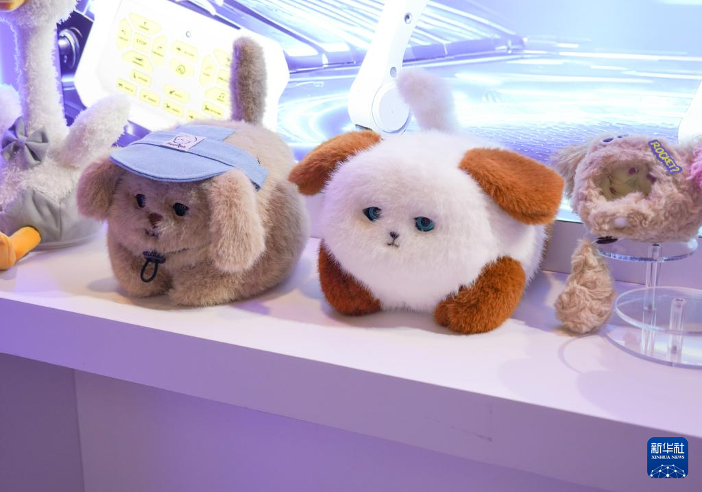 这是10月23日在广东汕头举行的第24届汕头·澄海国际玩具礼品博览会上拍摄的AI毛绒玩具。新华社记者 肖恩楠 摄