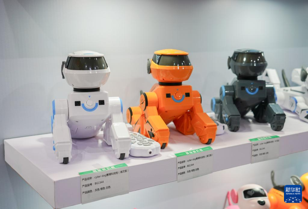 这是10月23日在广东汕头举行的第24届汕头·澄海国际玩具礼品博览会上拍摄的AI玩具狗。新华社记者 肖恩楠 摄