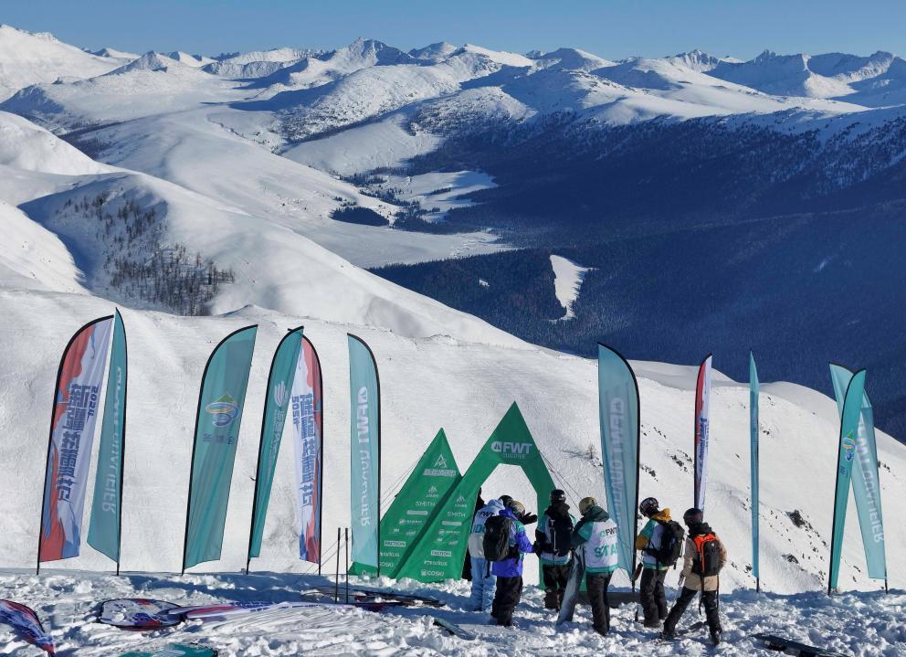 2024年12月4日,世界野雪巡回赛新疆禾木站工作人员在禾木吉克普林雪场勘查比赛场地。新华社记者 胡虎虎 摄