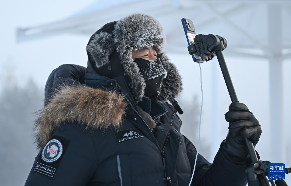 12月26日,短视频平台主播在内蒙古呼伦贝尔市根河市冷极广场直播。新华社记者 贝赫 摄