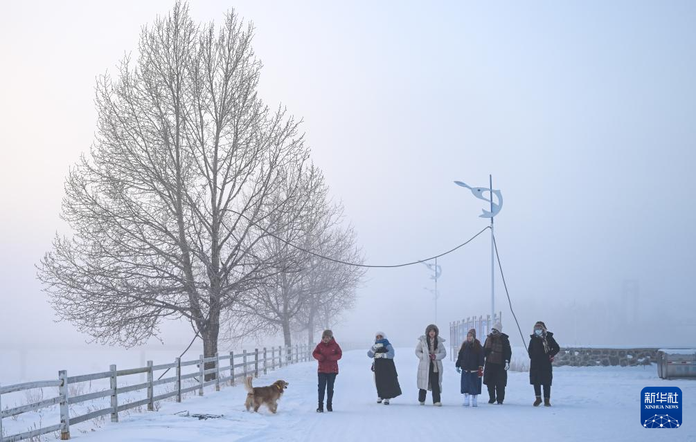 12月26日,游客在内蒙古呼伦贝尔市根河市游玩。新华社记者 贝赫 摄