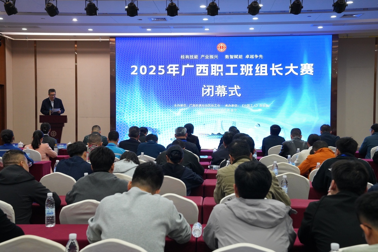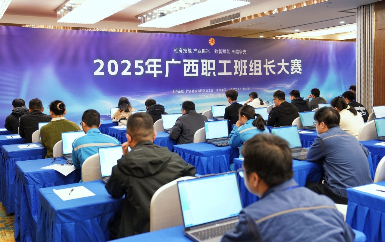 据了解,2025年广西职工班组长大赛是西南地区首个省级班组长竞赛。大赛以“‘桂有技能、产业振兴’——数智赋能,卓越争先”为主题,设置人工智能、机械、建筑、电力和有色金属5个行业赛道,分为线上初赛和线下决赛两个阶段,共有15.5万人次参与了线上学习,累计答题112.6万道,充分体现了广泛深入持久开展劳动和技能竞赛的办赛宗旨,为提升新时代班组建设与一线管理能力,积极引导全区班组长发挥“兵头将尾”关键作用,带动广大职工在生产组织、现场管理与创新实践中争先进位、担当作为发挥了积极作用。