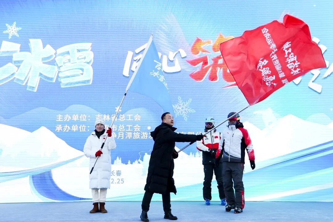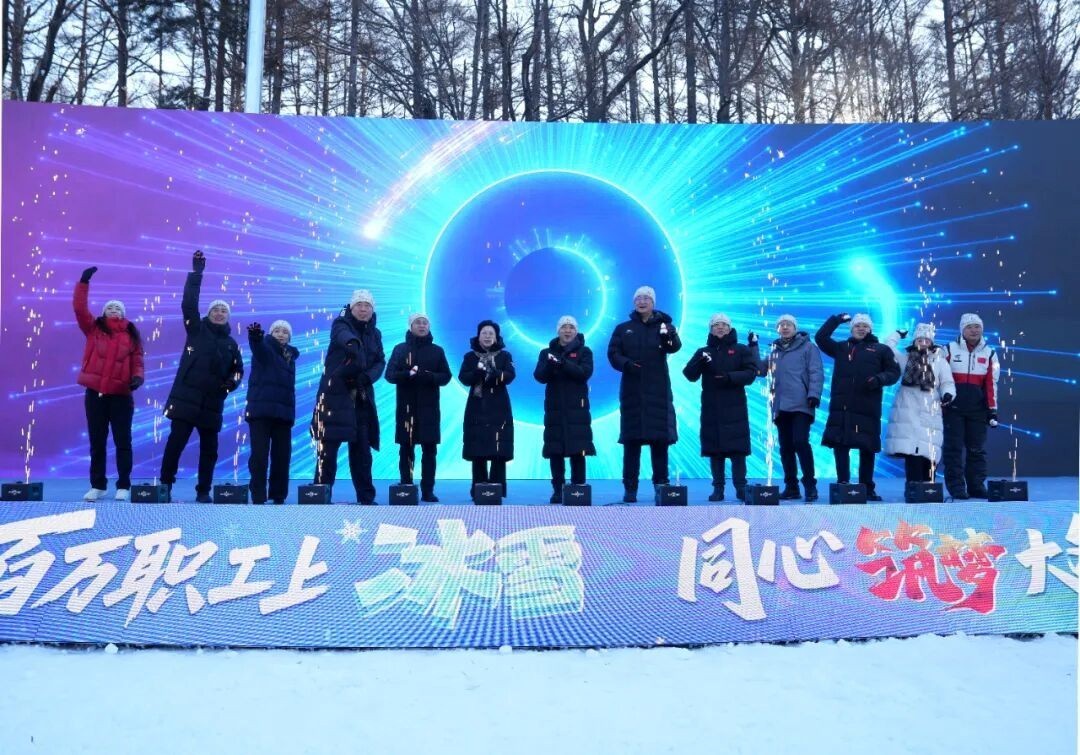 12月25日,吉林省总工会“百万职工上冰雪 同心筑梦大冬会”活动在长春净月潭滑雪场激情启幕。开场舞《冬季到吉林来玩雪》瞬间点燃现场气氛,“燃动冰雪·聚力大冬”主题快闪短片将全省各市州工会开展的冰雪培训、趣味体验、竞技赛事等场景浓缩于方寸之间,随着与会领导、劳模工匠、冰雪名将共同启动装置,一只只造型雪球抛向启动台,冰雪特效绚烂绽放,现场欢声如潮。