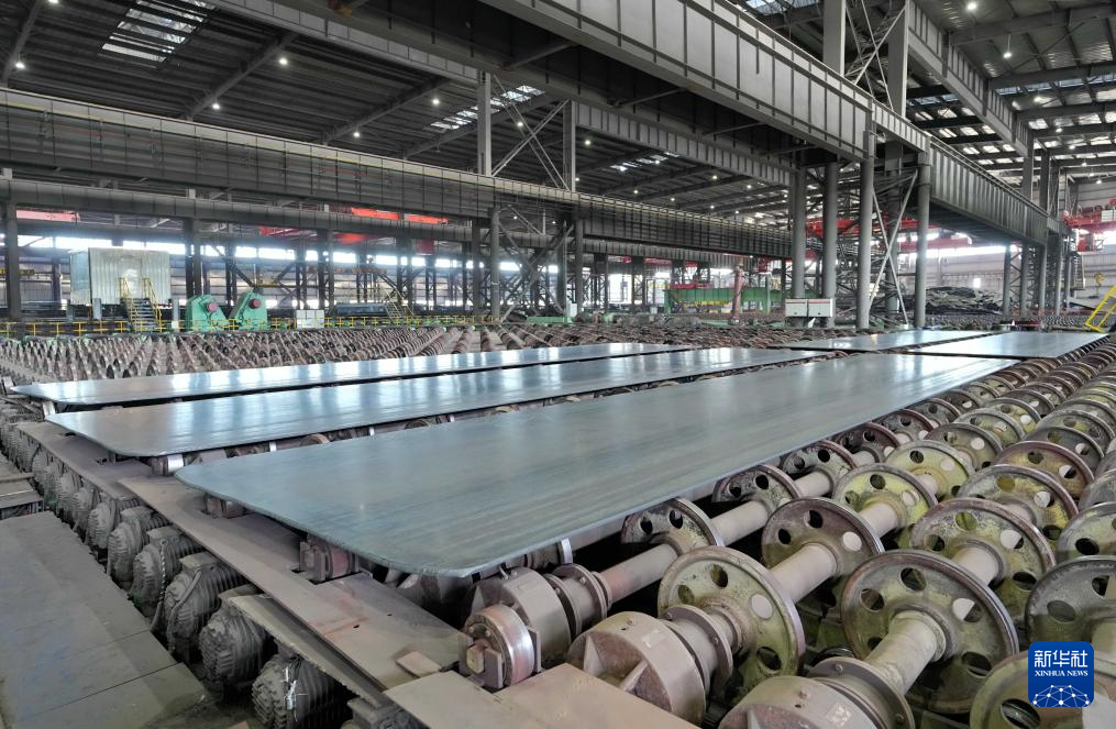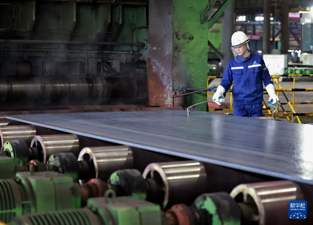 12月26日拍摄的唐山海港经济开发区一家船舶用钢企业生产线上的钢板。新华社记者 杨世尧 摄