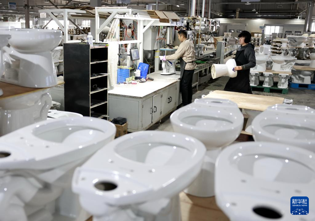 12月26日,工人在唐山海港经济开发区一家卫浴企业的生产车间工作。新华社记者 杨世尧 摄