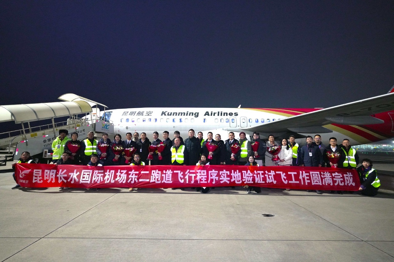 本次试飞由民航云南安全监管局组织开展,历时约5小时。验证期间,对新建东二跑道的导航设施信号、I类仪表进近程序、助航灯光系统、跑滑系统道面、标识系统、机载导航数据库、陆空通信覆盖等多项内容开展全方位检验,试飞过程平稳有序,各项飞行指标均符合行业标准。