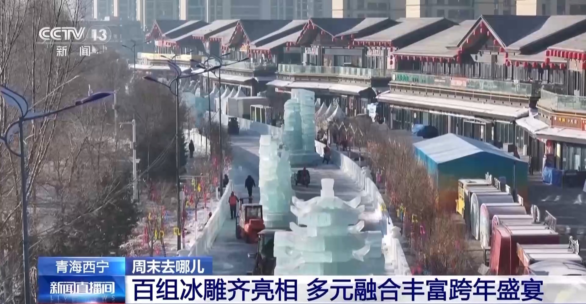 随着元旦临近,不少地方已经提前开启了旅游市场的预热活动。在青海省西宁市城北区的北川青唐城,大型雾凇冰雕群、可口的青海土火锅和热闹的民俗表演,吸引了很多游客前来体验。