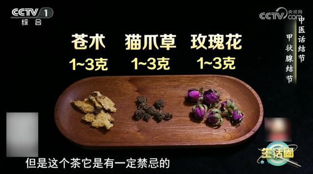 苍术、猫爪草、玫瑰花,各取1~3克,用热水冲泡饮用,具有祛痰湿、疏肝解郁、散结的功效,适合甲状腺结节人群饮用,也可以用于预防甲状腺结节发生。