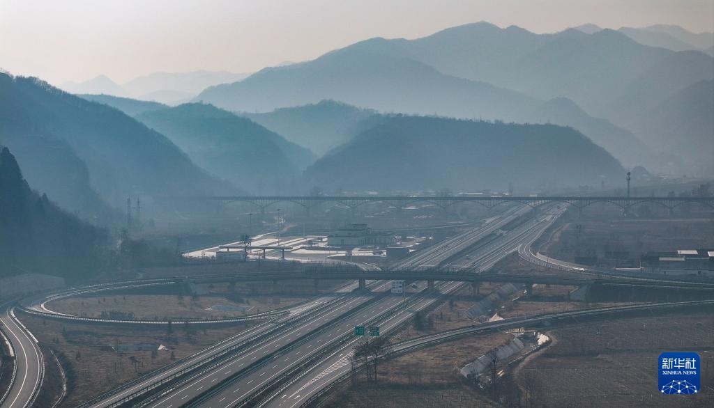 这是位于陕西省宝鸡市眉县境内的眉太高速路段(12月29日摄,无人机照片)。新华社记者 张博文 摄