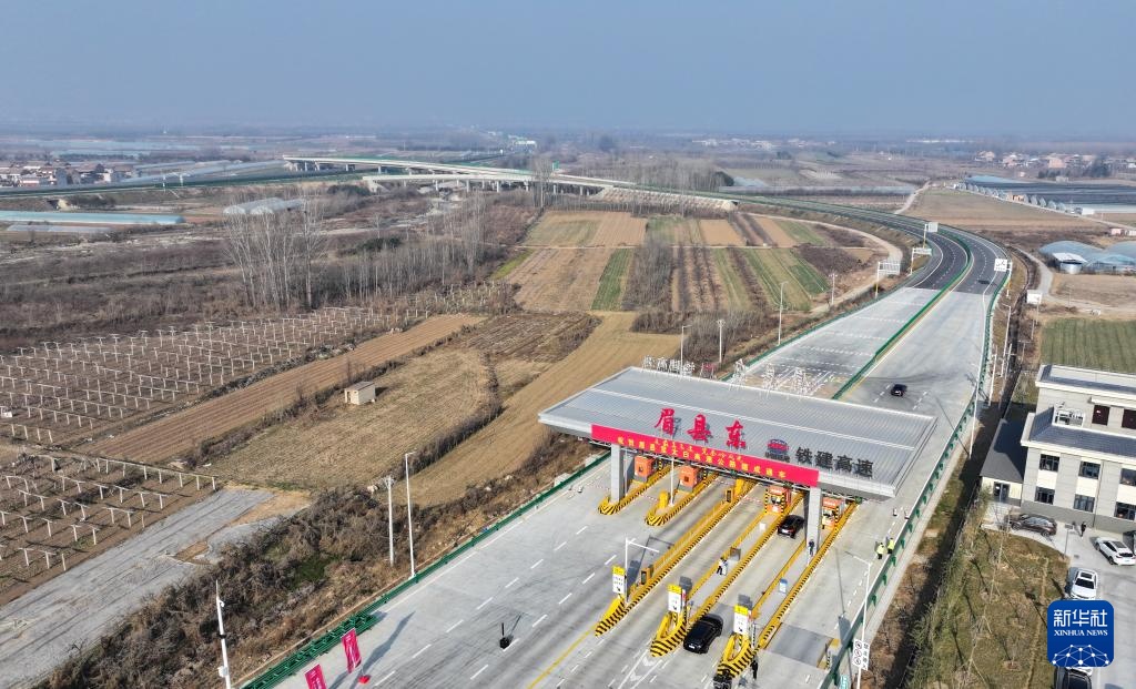 12月29日,车辆从眉县东收费站驶入陕西眉太高速(无人机照片)。新华社记者 张博文 摄
