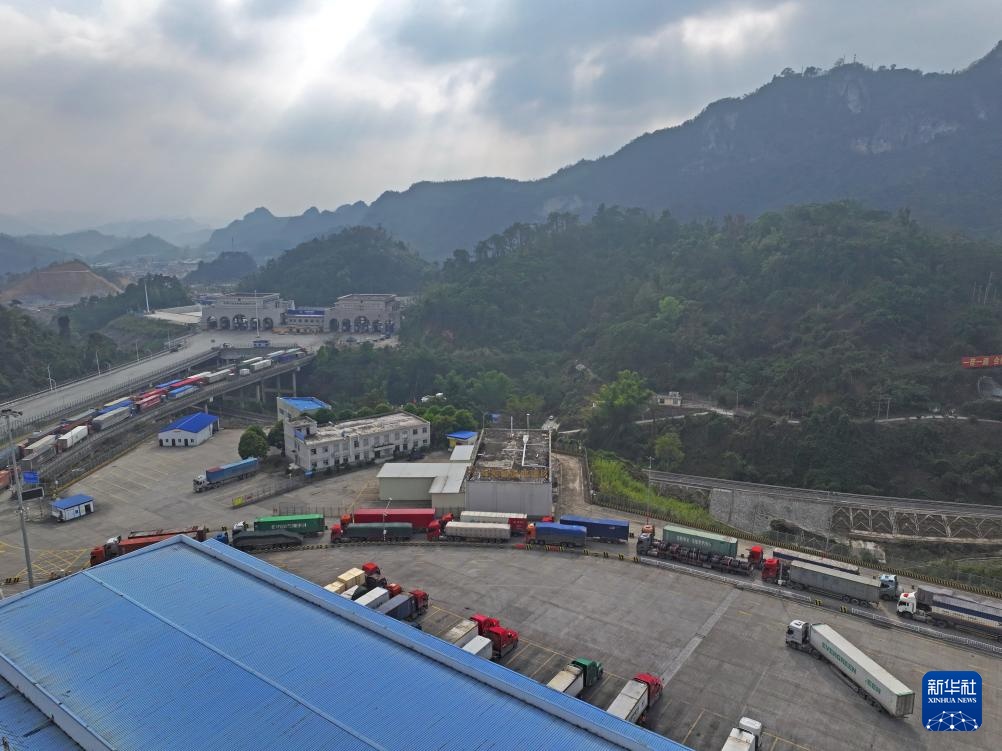 中越边境陆路通道上的广西凭祥口岸繁忙景象(2025年3月1日摄,无人机照片)。新华社记者 周华 摄