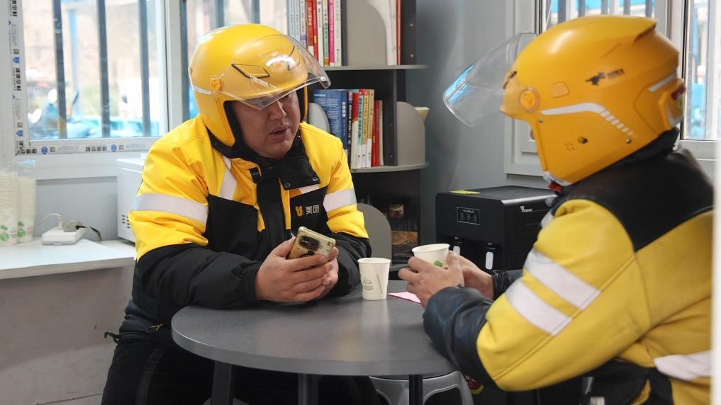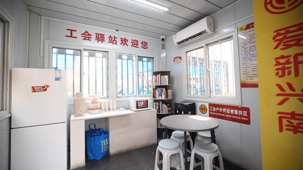 位于天津市南开区大悦城商场外的工会驿站,是一个为户外劳动者量身打造的“避风港”。