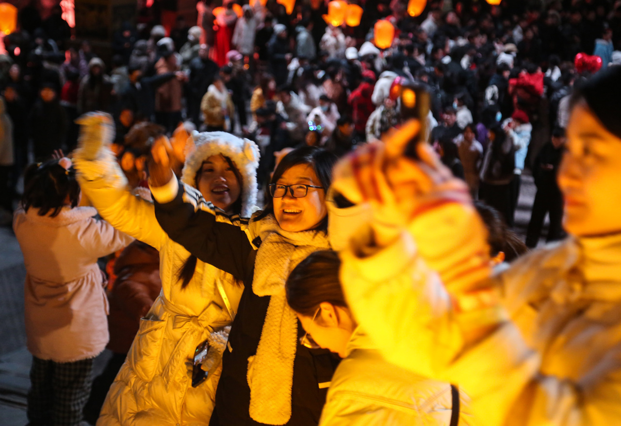 2025年12月31日晚,山东省临沂市郯城县郯国古城内灯火璀璨、游人如织。夜幕下,市民游客手捧孔明灯,写下新春祈愿,将满载祝福的明灯缓缓放飞,人们在璀璨光影中喜迎新年到来。(工人日报客户端记者 赵昂 通讯员 李结义)