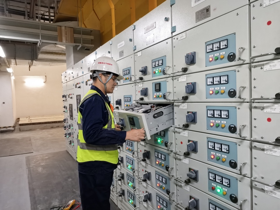 叶鹏飞在检查处理400V低压柜设备馈线抽屉(熊飞摄)