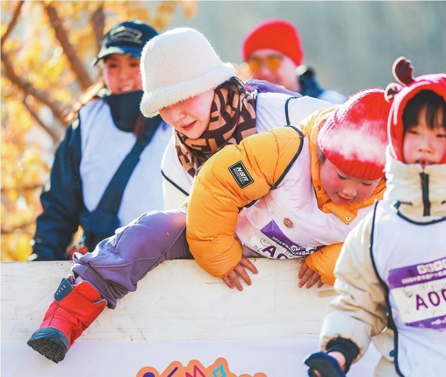 游客在沈阳棋盘山冰雪大世界体验亲子冰雪穿越。辽宁日报记者 杨靖岫 摄