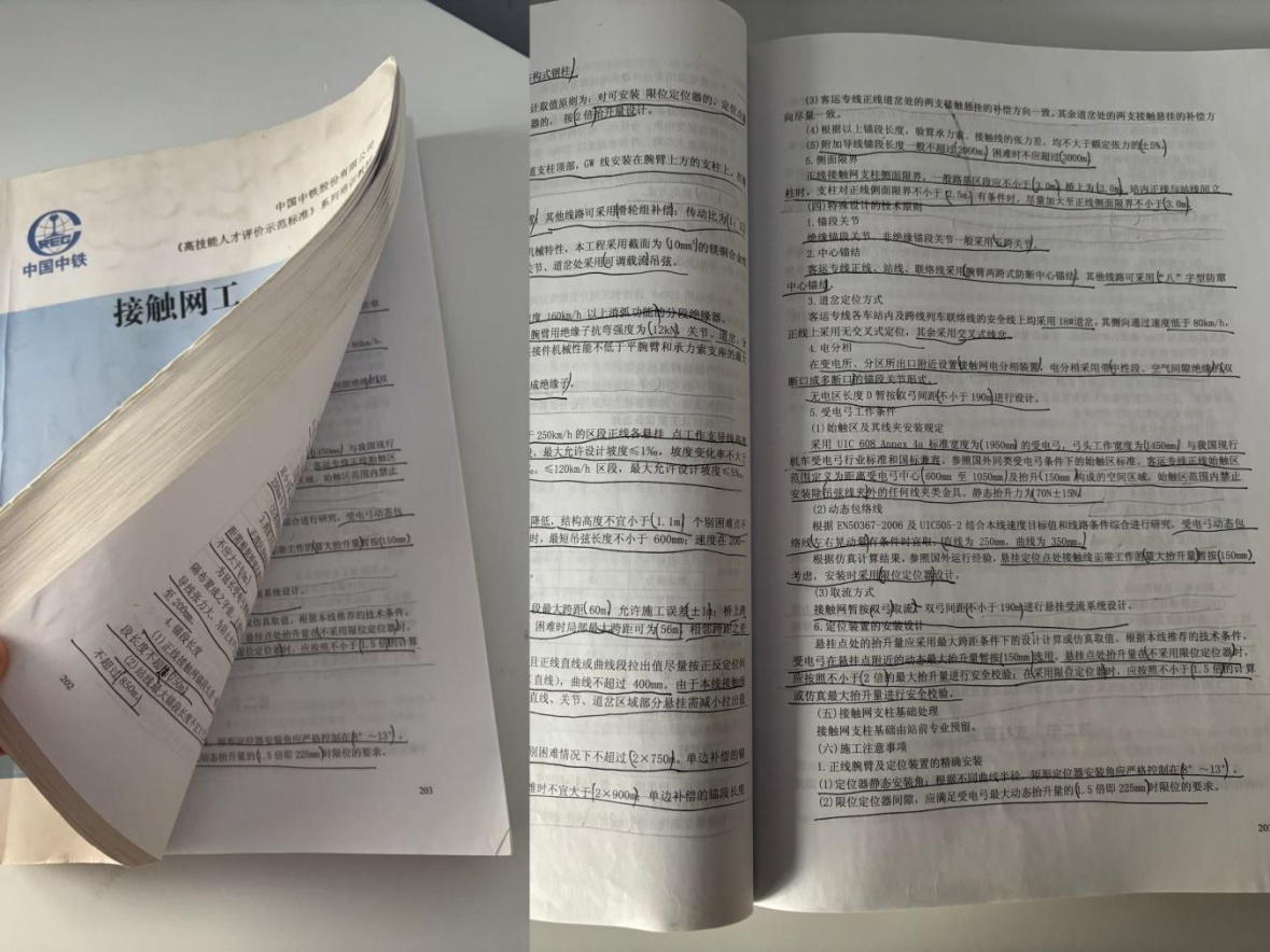 说不上最爱,但绝对是被我“啃烂”的一本——《接触网工》。这书对咱接触网工来说,就跟周星驰电影中提到的《演员的自我修养》一样,是安身立命的本钱!为了备战,我把这本书都快翻烂了。同事们见了都打趣我:“你要是上学的时候这么拼,好大学还不是随便挑?”