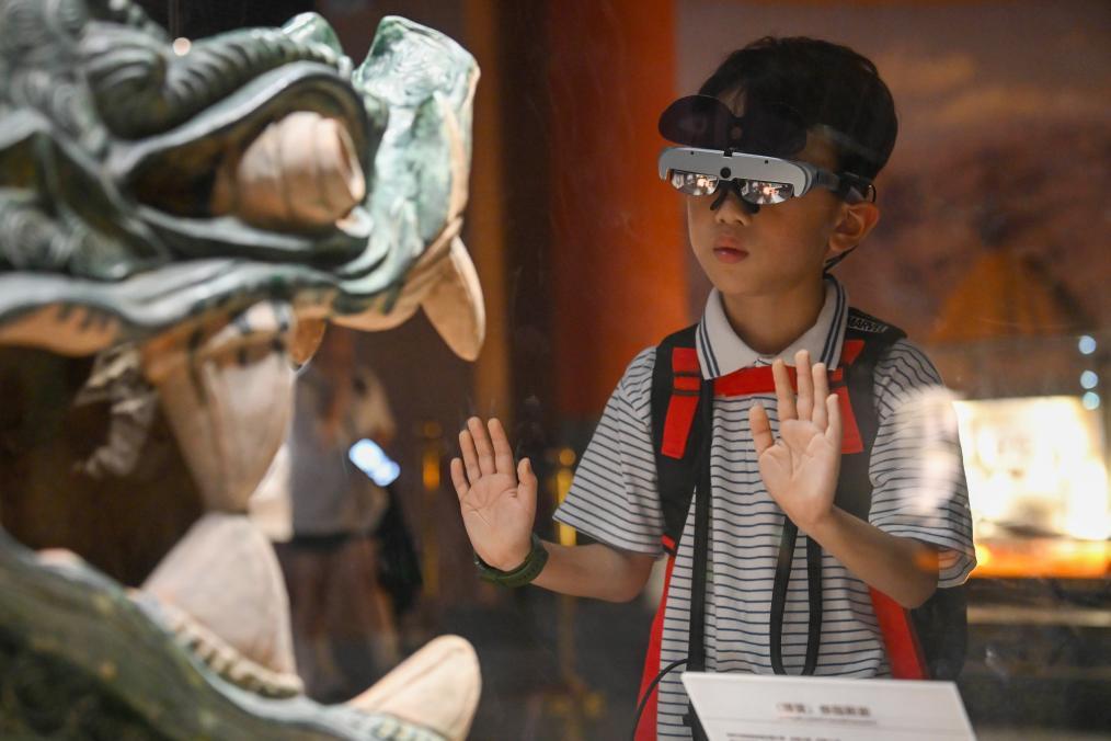 为了满足人们对陵寝地宫的好奇,景区引入了VR、XR沉浸式体验项目。游客可以“乘坐”文物敕燃马牌飞越陵区,或深入神秘恢弘的地宫探险,还可跟随考古学家一起“挖宝”,在趣味互动中了解历史。“这些项目很受小朋友欢迎。”陈晓旭说。