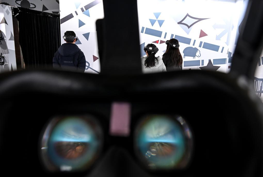 游客戴上VR眼镜,沉浸式“飞越”西夏陵、到地宫“探险”。新华社记者 冯开华 摄