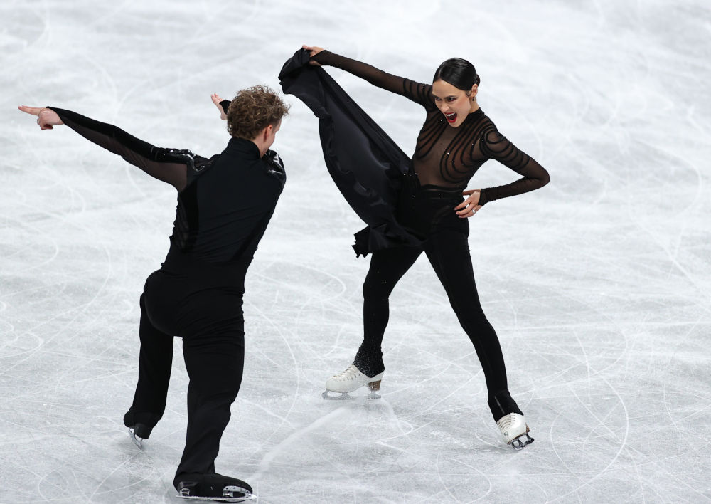 2025年12月6日,美国组合乔克(右)/贝茨在冰舞自由舞比赛中。他们以220.42分的成绩夺得冰舞金牌。当日,2025-2026赛季国际滑联世界花样滑冰大奖赛总决赛冰舞比赛在日本爱知县名古屋举行。新华社记者 岳晨星 摄