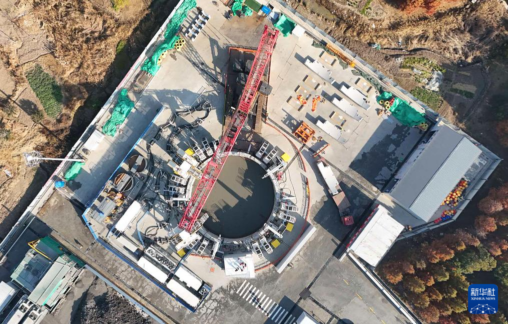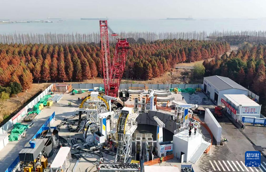 1月13日拍摄的崇太长江隧道2号竖井项目施工现场(无人机照片)。新华社记者 方喆 摄