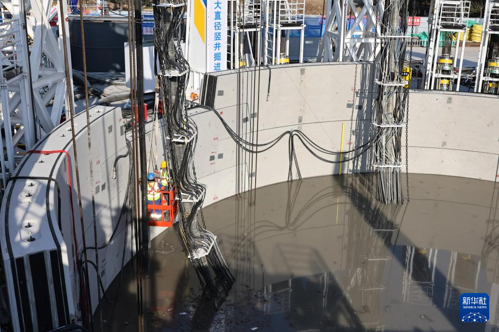 1月13日,工人在崇太长江隧道2号竖井项目现场施工。新华社记者 方喆 摄