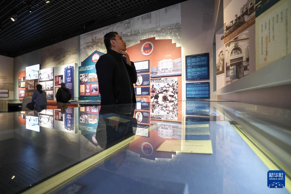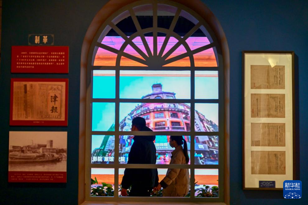 1月13日,市民在天津博物馆参观“实业兴邦——近代天津工商业展”,了解天津劝业场相关历史背景。新华社记者 孙凡越 摄