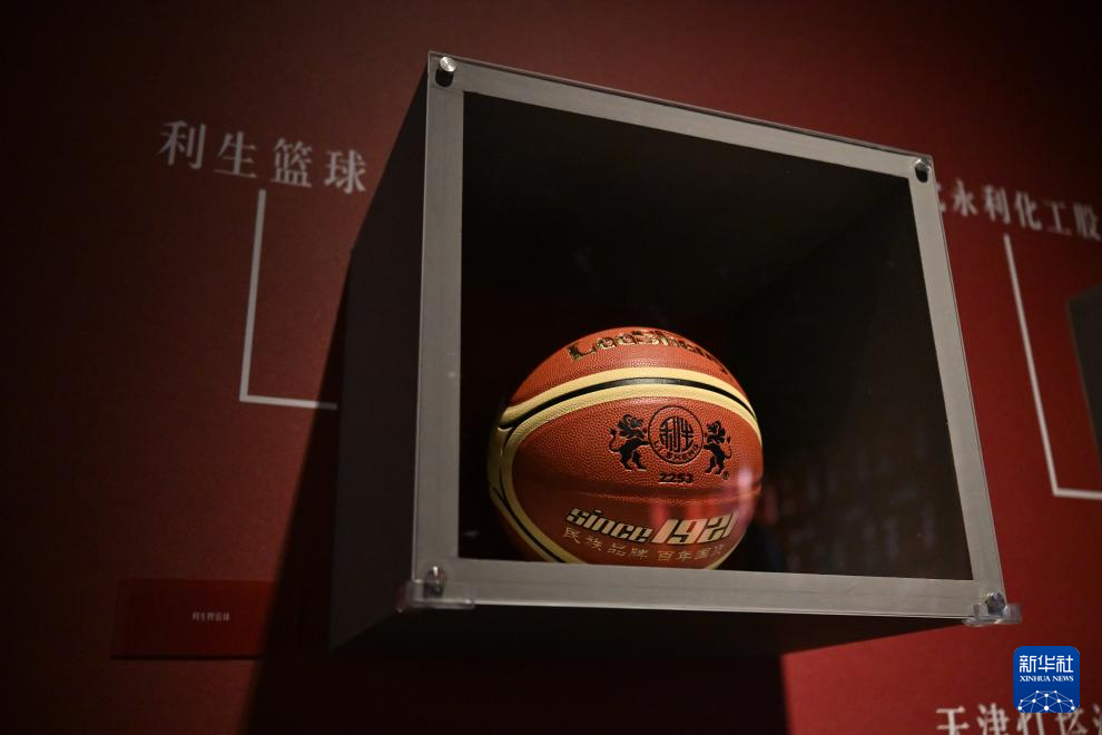 这是在天津博物馆“实业兴邦——近代天津工商业展”拍摄的利生篮球展品(1月13日摄)。新华社记者 孙凡越 摄