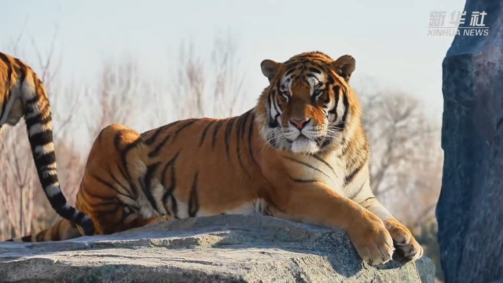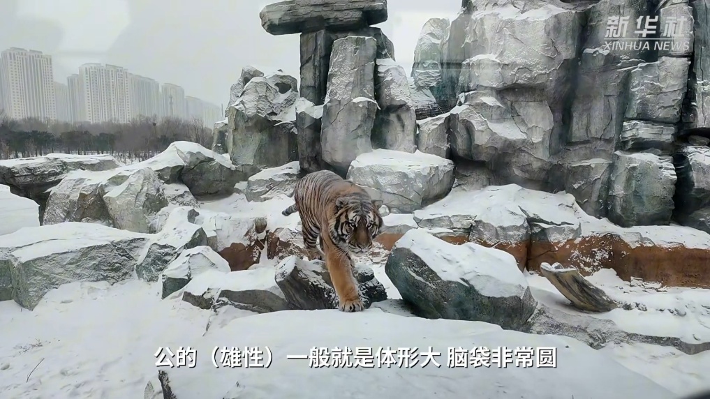 在黑龙江东北虎林园里,成年雄虎体型壮硕、头圆爪粗,尽显王者气度。