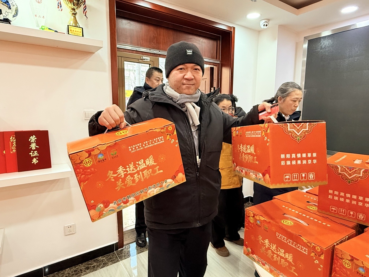 “以前领东西得排半天队,今年在家动动手指就能预约,到了直接领取,真是太方便了。”刚刚在北京市朝阳区朝外工会服务站拿到温暖礼包的泰辣椒餐饮服务工会会员李鸿娟,看着手中沉甸甸的礼盒,脸上洋溢着笑容。