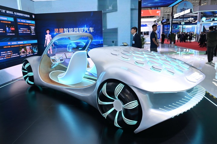 2025年4月29日,第八届数字中国建设峰会在福州海峡国际会展中心举行。这是在峰会现场体验区拍摄的灵犀智能网联汽车。新华社记者 林善传 摄