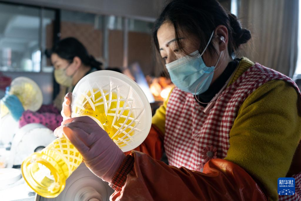 在安徽省天长市石梁镇,工人在制作水烟壶(1月14日摄)。新华社记者 杜宇 摄