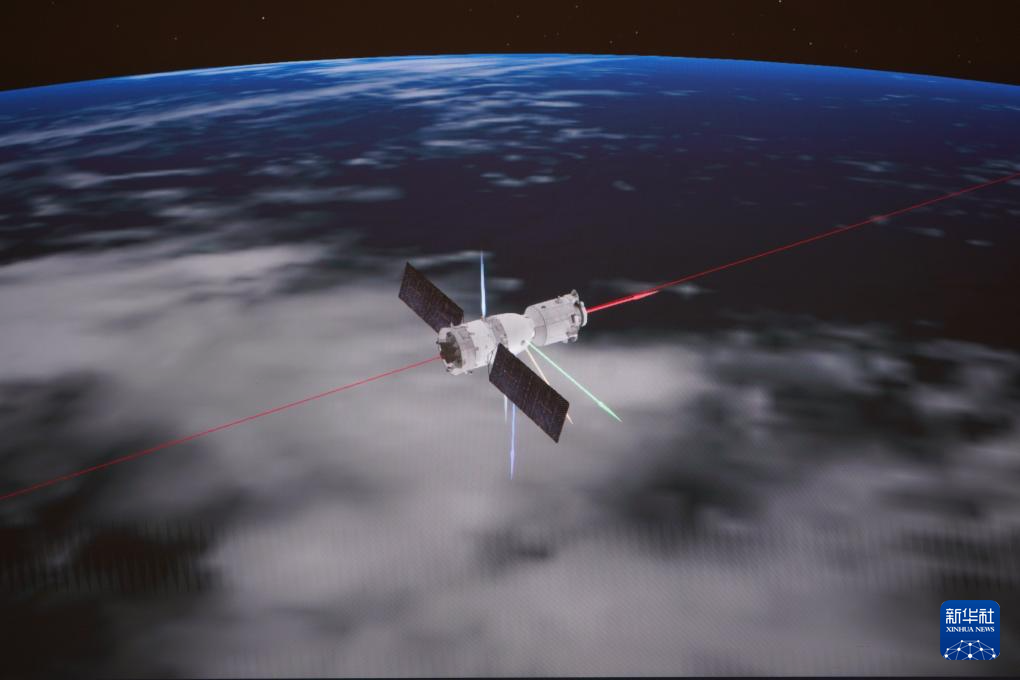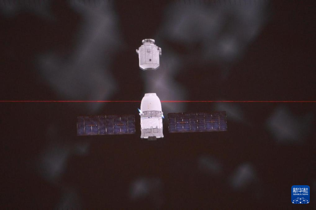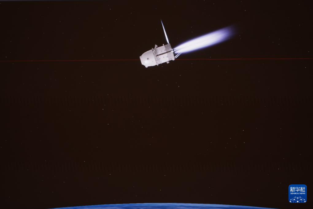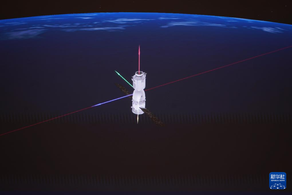 1月19日在北京航天飞行控制中心拍摄的神舟二十号飞船撤离空间站的模拟画面。新华社记者 王春涛 摄
