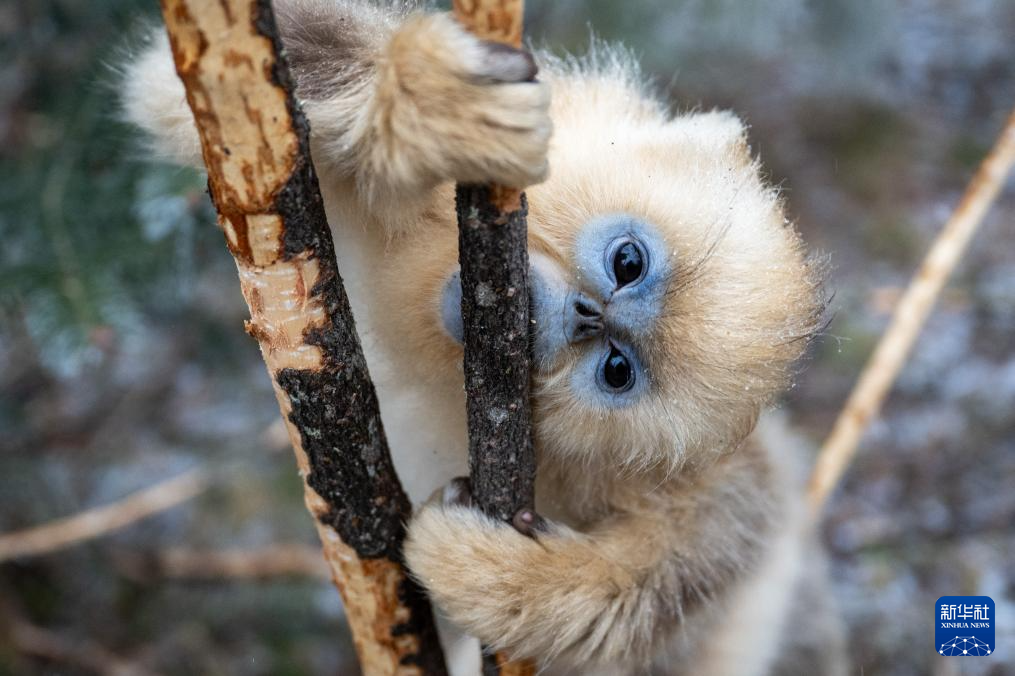 1月19日,一只金丝猴在神农架国家公园大龙潭金丝猴野外研究基地树枝上休憩。新华社记者 杜子璇 摄