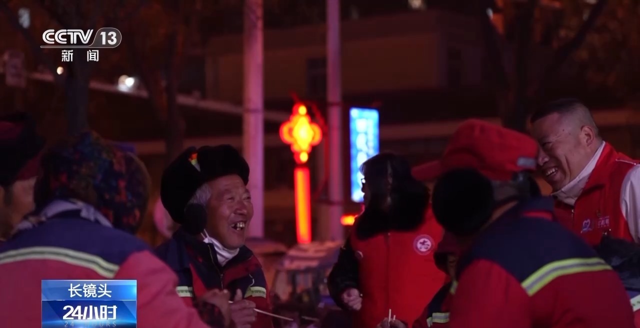 十几张餐桌围坐了120多名环卫工人,严寒与疲惫在这一刻荡然无存,又是一个温暖的清晨。