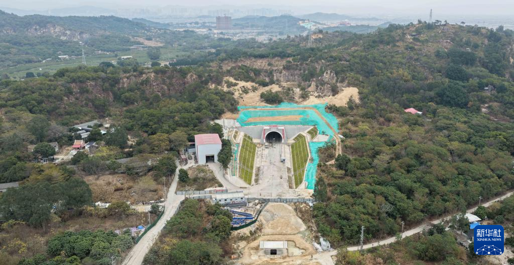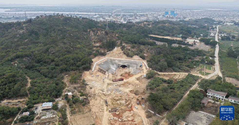 1月21日拍摄的漳汕高铁马金山隧道施工现场(无人机照片)。新华社记者 邓华 摄