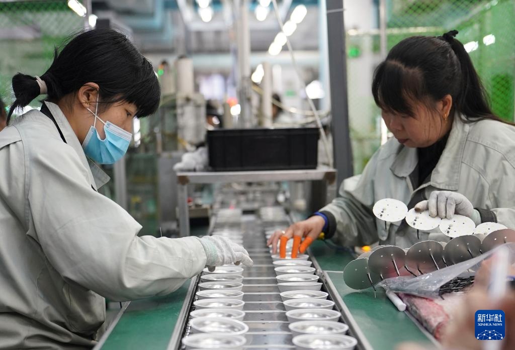 工人在瑞金市得邦照明有限公司生产车间内工作(1月21日摄)。新华社记者 周密 摄