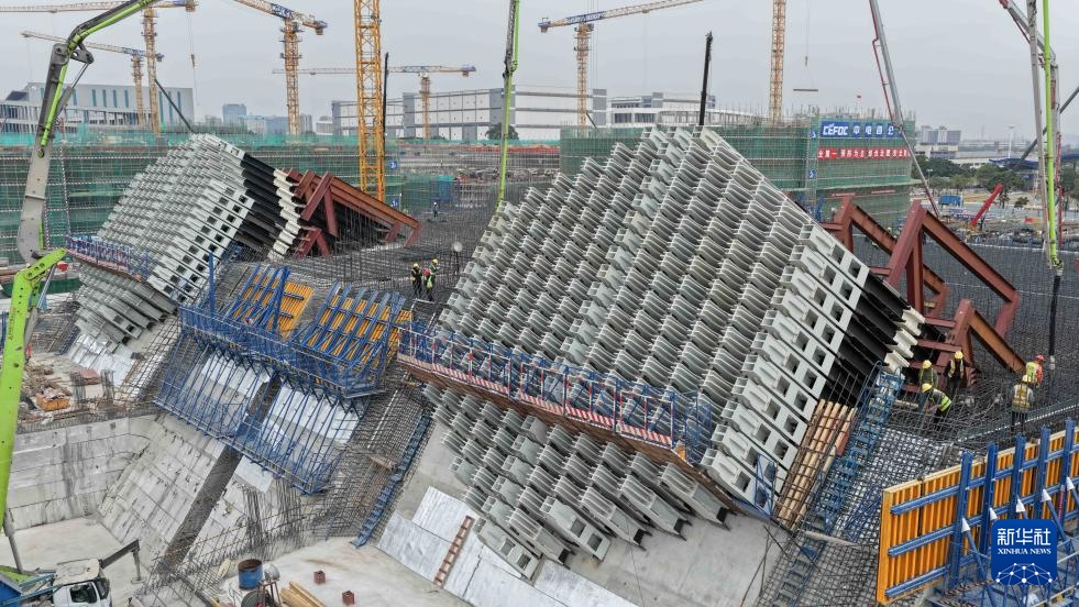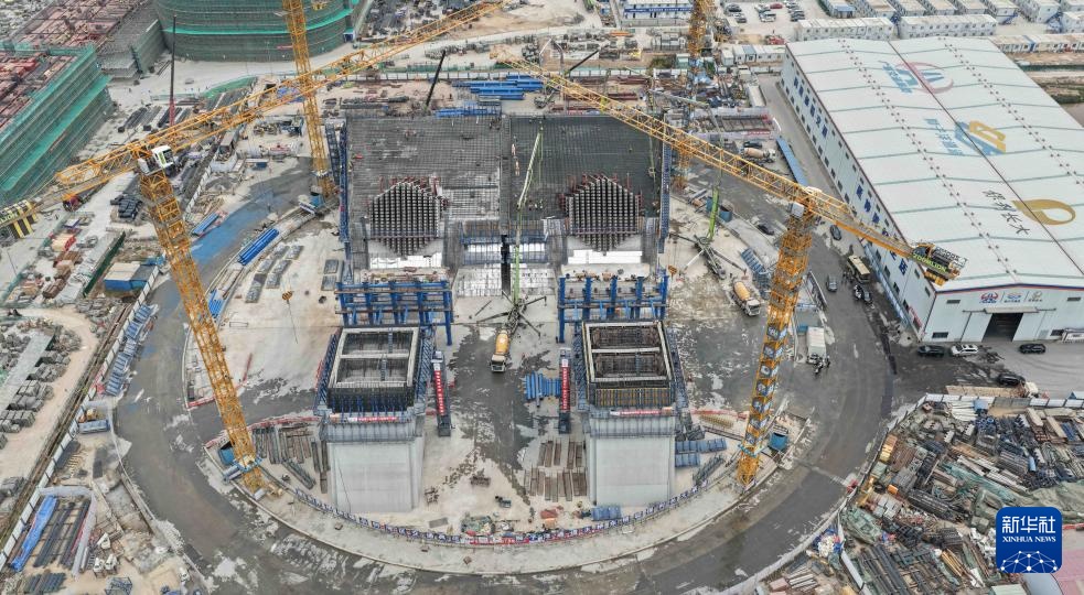 这是1月22日拍摄的狮子洋通道狮子洋大桥的东锚碇施工现场(无人机照片)。新华社记者 邓华 摄