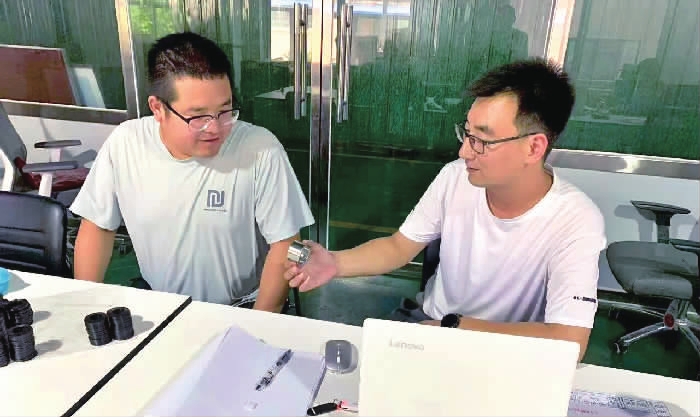 张兴华(右)和同事研讨精密设备加工技术。金静 摄