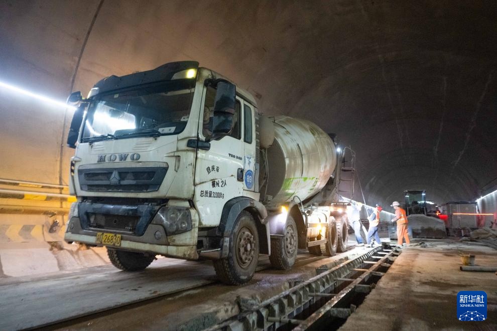 1月23日,工人在成渝中线高铁人和隧道内施工。新华社记者 唐奕 摄