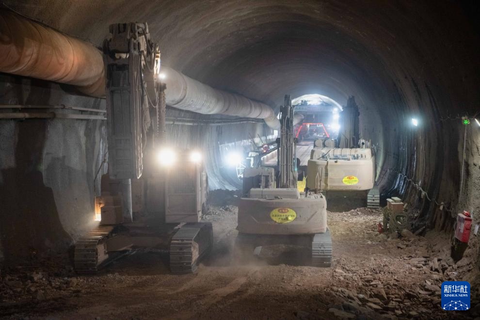 1月23日,工人驾驶大型机械在成渝中线高铁人和隧道内施工。新华社记者 唐奕 摄