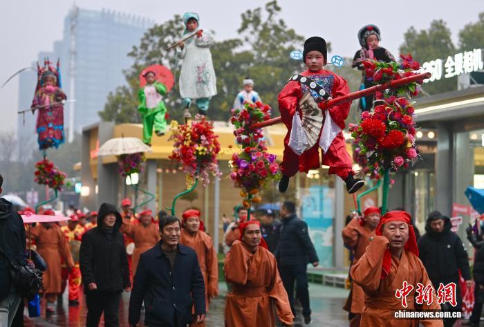 1月25日,“我们的节日——欢欢喜喜过大年”2026春节主题文旅活动在合肥市举行。图为肘阁抬阁巡游现场。中新社记者 韩苏原 摄