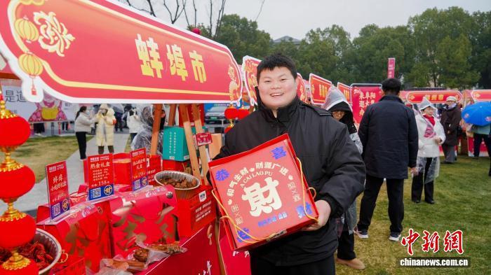 1月25日,来自蚌埠的商户在展示自己的产品。中新社记者 张强 摄