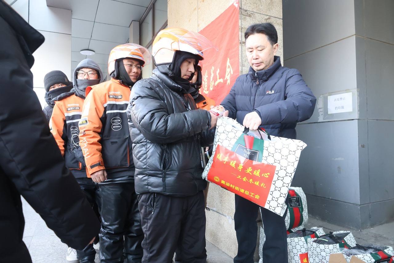 奥运村街道总工会开展“冬送温暖”专项活动,将贴心关怀送到辖区外卖骑手手中,让奔波在寒风中的“城市摆渡人”度过一个暖意融融的传统佳节。