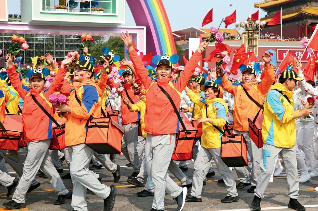 2019年10月1日上午,庆祝中华人民共和国成立70周年大会在北京天安门广场隆重举行。这是快递小哥所在的“美好生活”方阵。