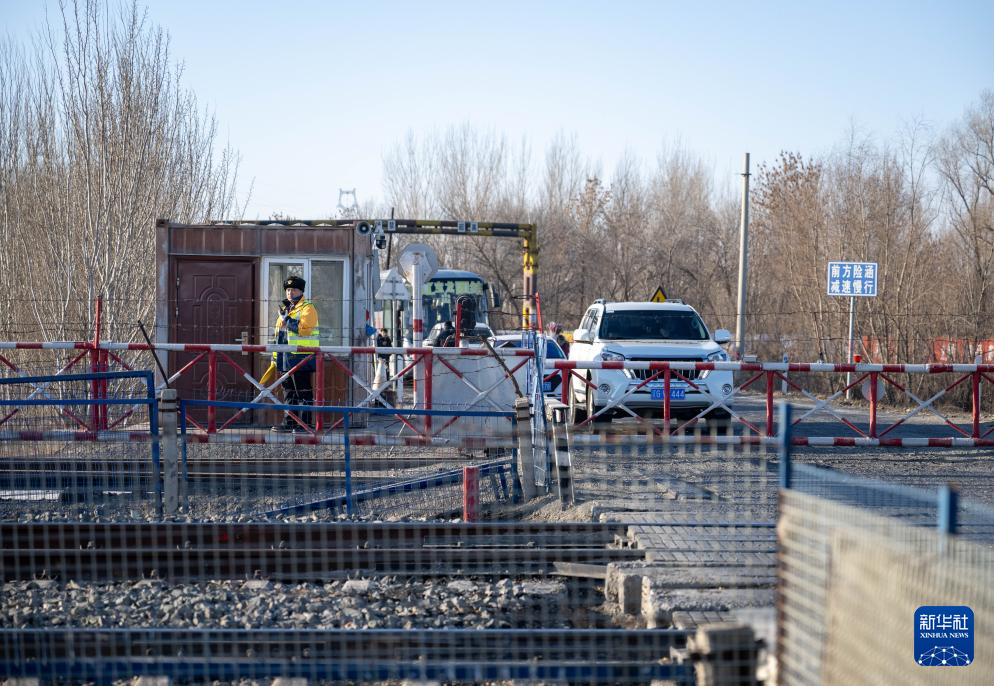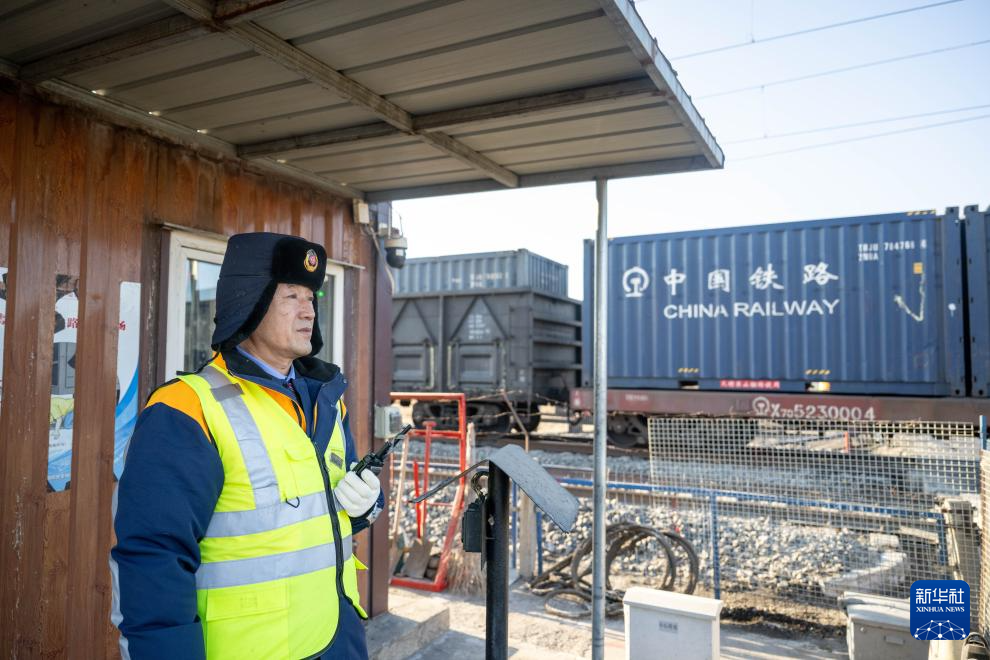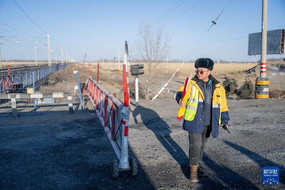2月1日,工人张浩在道口值班。新华社记者 连振 摄