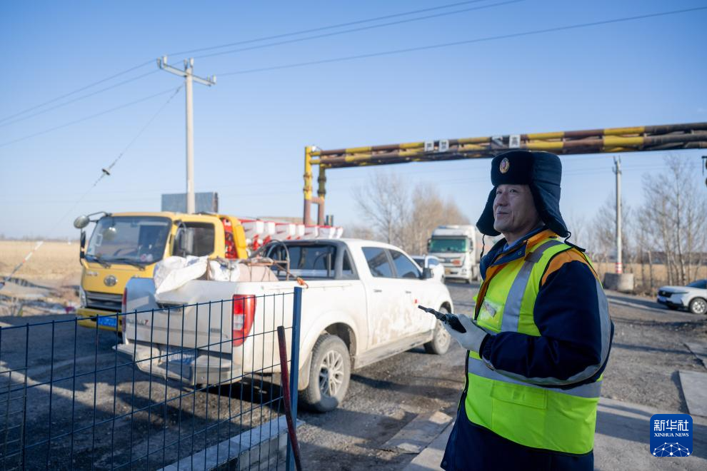 2月1日,徐中成在道口值班。新华社记者 连振 摄