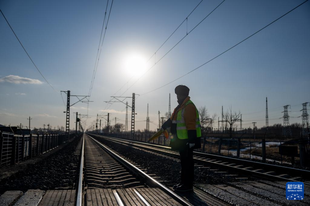 2月1日,工人张浩在列车经过后检查道口。新华社记者 连振 摄