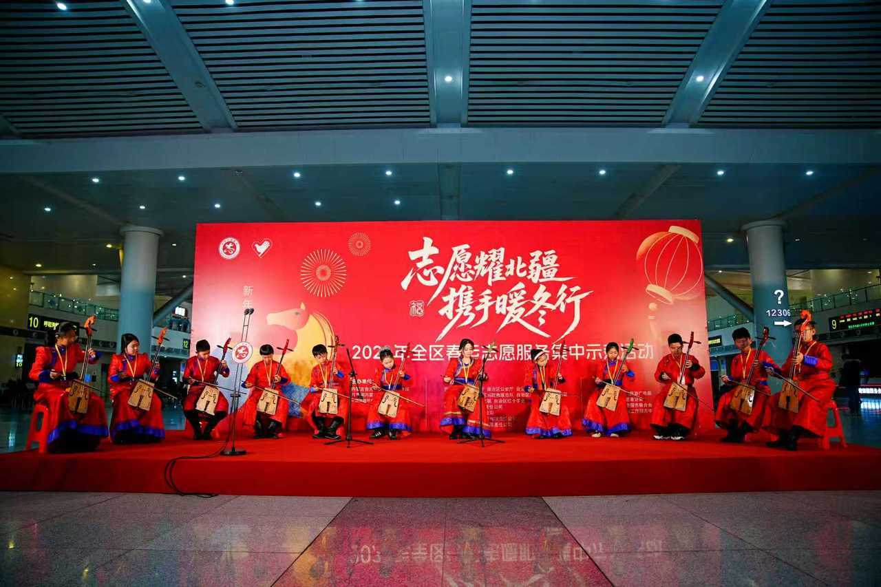 活动现场发布全区志愿服务岗位与志愿服务组织白名单,标志着内蒙古志愿服务迈向制度化、规范化的新阶段。现场青年代表倡议弘扬“蒙古马精神”,以“志愿红”护航春运。活动还向环卫工人、交警、快递员等一线工作者送上慰问,彰显“暖冬”温度。文艺工作者与志愿者同台演出,以马头琴、歌舞等节目传递关怀、增添年味。各参与单位设置现场志愿服务示范区,进一步弘扬志愿精神,丰富活动内涵。