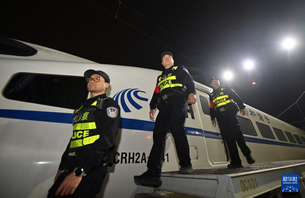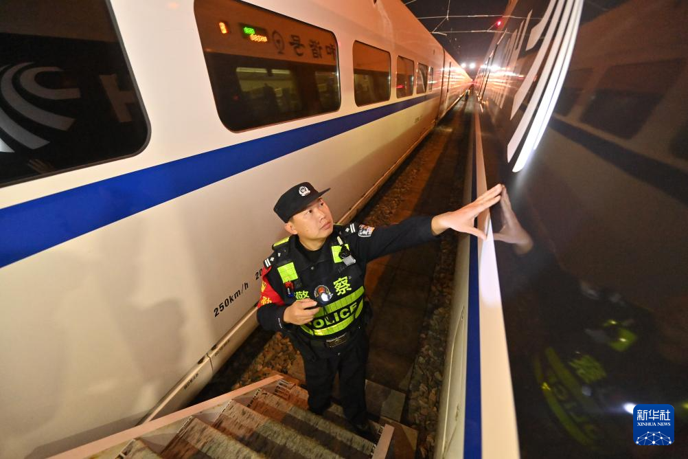 南宁动车所日常主要承担动车组一、二级检修、临修、外皮清洗、吸污作业、检修设备与信息化系统维护等任务。南宁铁路公安局南宁公安处长岗岭站派出所民警负责这里的安全守护,春运期间,他们坚守岗位,做好“陆地舰队”安全的“守夜人”。